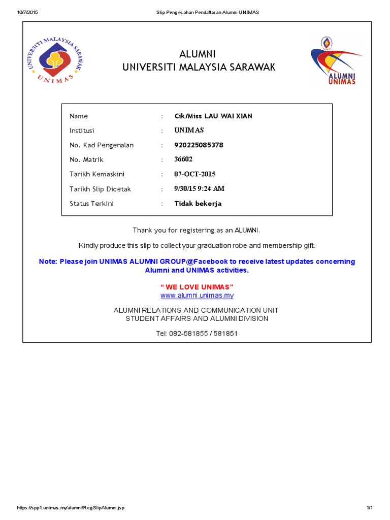 Slip Pengesahan Pendaftaran Alumni Unimas Pdf
